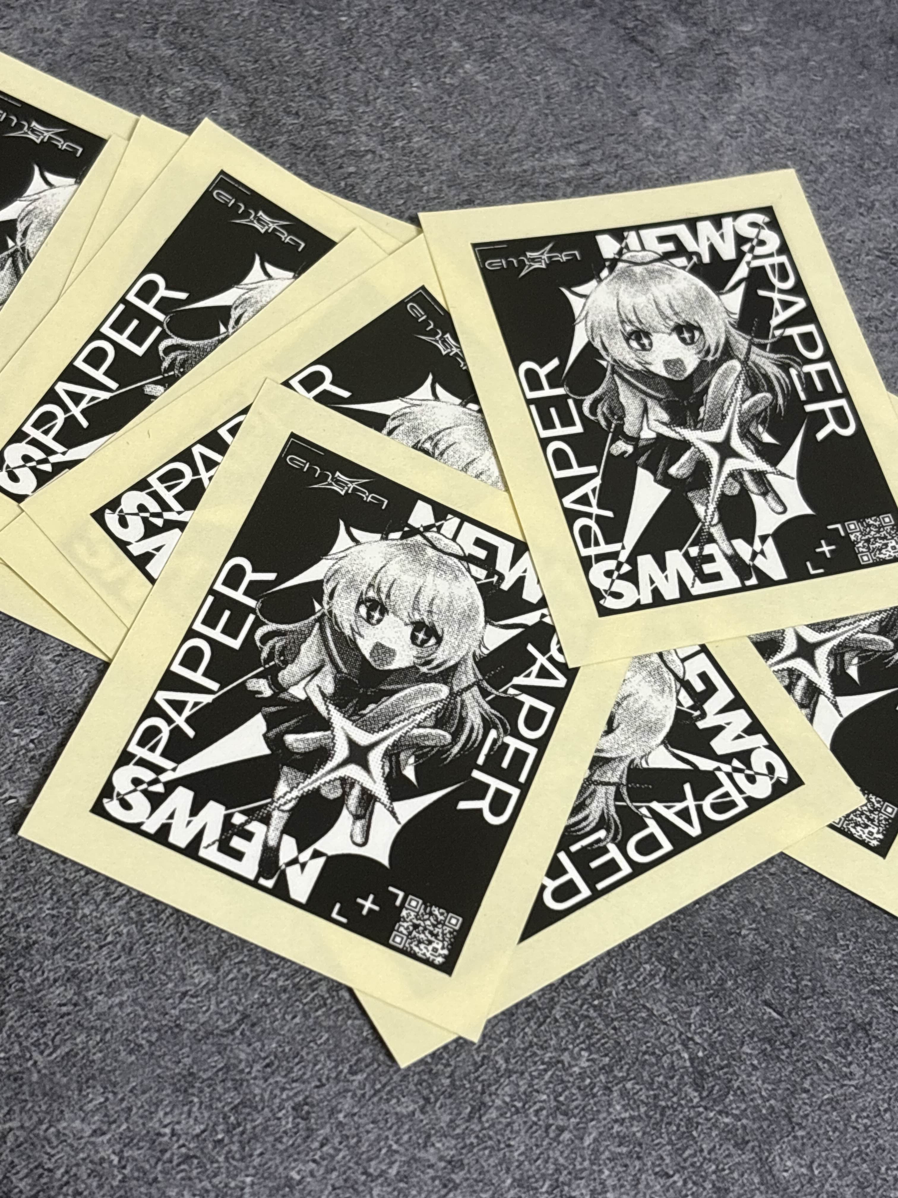 ユポ紙 50mmx40mm 手のひらサイズのコラボステッカー!スマホにぴったり! Illustrated by 駒澤零 (https://x.com/ren_ren0824)